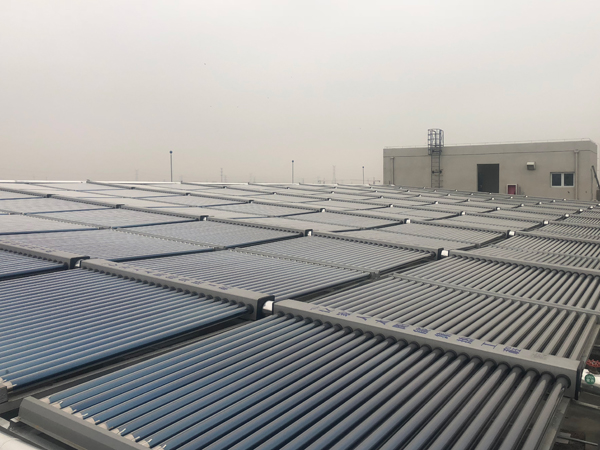 项目配置240吨太阳能水箱,太阳能水箱分上下两个系统,每个系统120吨水箱,每个太阳能系统配置380小片,每小片26根太阳能管,管长大约1.5m;