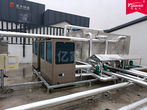 此次亿家人给该工程配置了50组50支管对插式玻璃真空管太阳能集热器,保障在晴好天气下提供30吨左右的热水供应,两台20P空气能主机保障在阴雨天或者恶劣环境时,满足热水需求。系统投入运行后,得到客户一致认可!