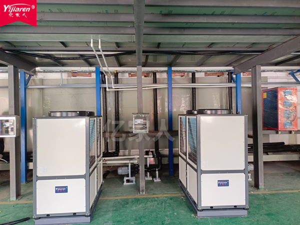 同时考虑到电镀槽水质的问题,设计间接加热水方案,通过空气源热泵加热储热水箱的水,再把热水通过槽内放置的钛管加热槽液。此设计方案,空气源热泵使用寿命延长,系统稳定,温度均匀。