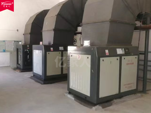 在每个矿井上面都会有空压机,空压机也称空气压缩机,它主要的作用是将空气进行压缩,使其压力增大,然后供给井下的风钻等设备使用。在压气的同时空压机自身也会产生很大的热量,这些热量约合占到空压机装机功率的95%左右。所以一台110千瓦的空压机,每个小时排出的热量差不多有100KW,而这些热量就是二十多匹的空气能热水器的产热量。如果把这些空压机排出的废热进行回收利用。是不是会节省很多的电呢?答案是肯定的。