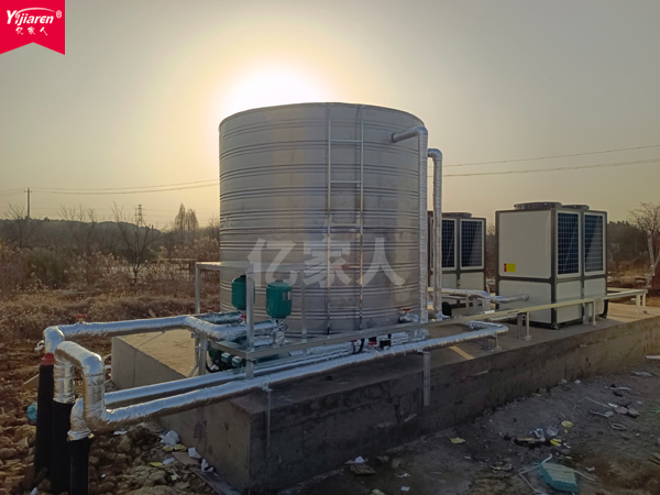 3、亿家人在本项目中配置二台YJR-30HP-DII的空气源热泵热水机组,另外考虑到特别寒冷天气,所以还增加了电加热辅助系统。
