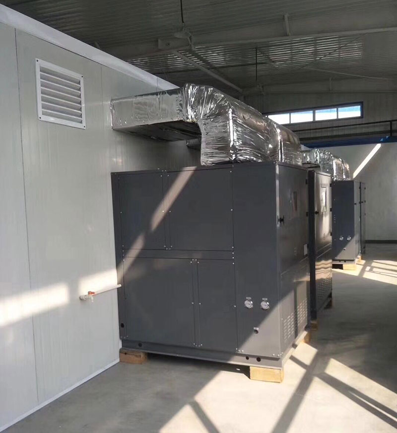 光伏板在生产过程中需要胶水贴合,贴合需要在适当的温度下放置足够长的时间。传统的恒温固化房能耗太高,所以我们为盐城客户定制了一套空气能热泵恒温固化房节能系统,从系统设备到设备生产以及固化房的搭建,都由我们负责。