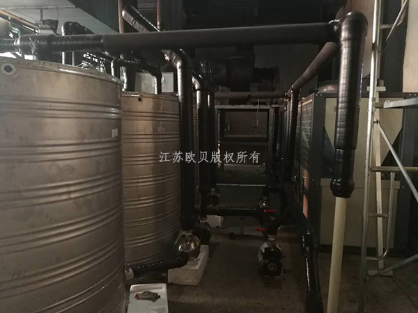 系统配置:每个罐想对应配置5吨的保温水箱,共3个;中温水箱配置2台25匹高温空气源热泵机组,高温水配置1台25匹复叠高温热泵机组。