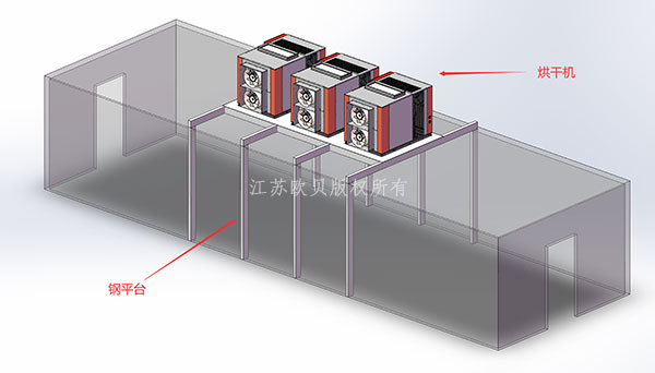 结合上述问题后,江苏欧贝工程技术人员决定采用热泵+余热回收技术给该企业做节能改造。在提高能源效率、降低运行成本、减少环境污染等方面带来显著效益。同时系统配备高精度的温湿度控制系统,可以更加精确地控制烘干过程,更好的保证产品烘干质量。