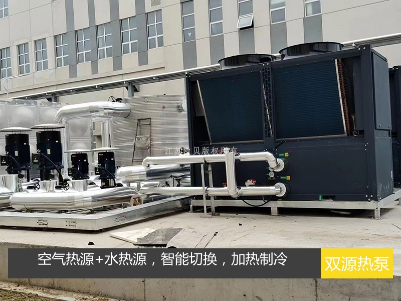 双源热泵是一种能够同时利用空气源和水源(或地源)的热泵系统。它结合了空气源热泵和水源(地源)热泵的优点,在不同的环境条件下,可以自动切换热源,以实现超大能源利用效率。双源热泵具有高效节能、环保、稳定可靠等优点,适用于各种工业生产场景。