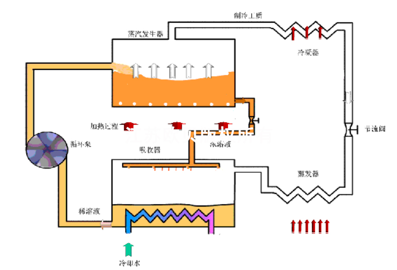 冷却水作为热源,流经热泵的蒸发器,将热量传递给制冷剂。