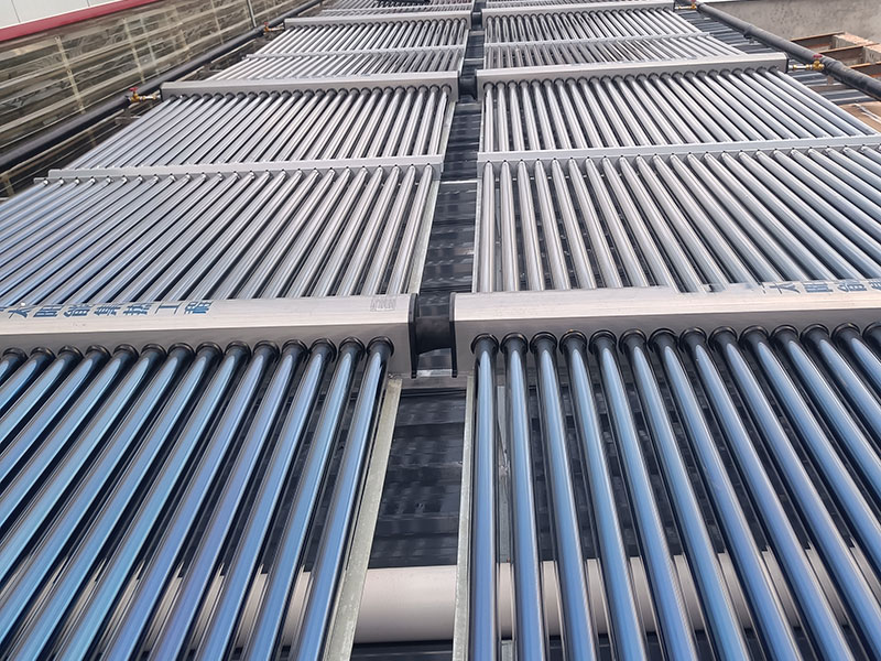 设备配置:配50-80组真空管式太阳能集热器,3-5台10-20匹空气能热泵,结合循环泵、补水泵等辅助设备,适配三班倒集中用水特点。