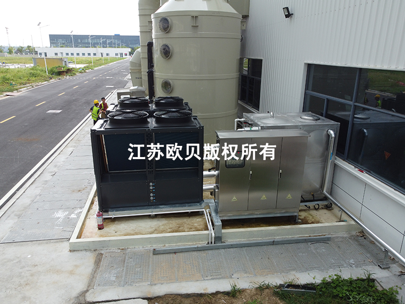 针对75℃水温需求的铜片清洗线,和90℃水温需求的化镍线,选择100P变频复叠式高温空气源热泵机组,采用闭式循环水系统,以确保水温的稳定性和系统的节能性。