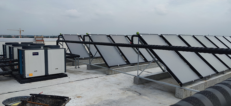 青岛物流园平板太阳能+空气能热泵热水系统项目